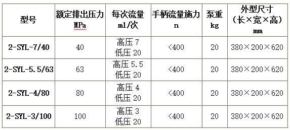 楷陽(yáng)2SYL型手動(dòng)雙缸系列試壓泵為上海楷陽(yáng)近年來(lái)研發(fā)的新品水泵,是在SYL型手動(dòng)試壓泵的基礎(chǔ)上的延伸。