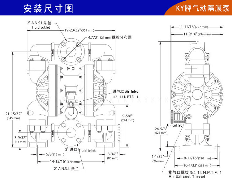 2)、氟塑料氣動(dòng)隔膜泵相對(duì)于金屬材質(zhì)氣動(dòng)隔膜泵,重量較輕,只要有氣源,把氣管查到氟塑料隔膜泵的進(jìn)氣閥,它就可以工作,極大顯示了KY-50LF隔膜泵的超強(qiáng)移動(dòng)性能;對(duì)于一些需要經(jīng)常移動(dòng)抽送液體的工況是一種絕佳的大流量氣動(dòng)隔膜泵選擇;