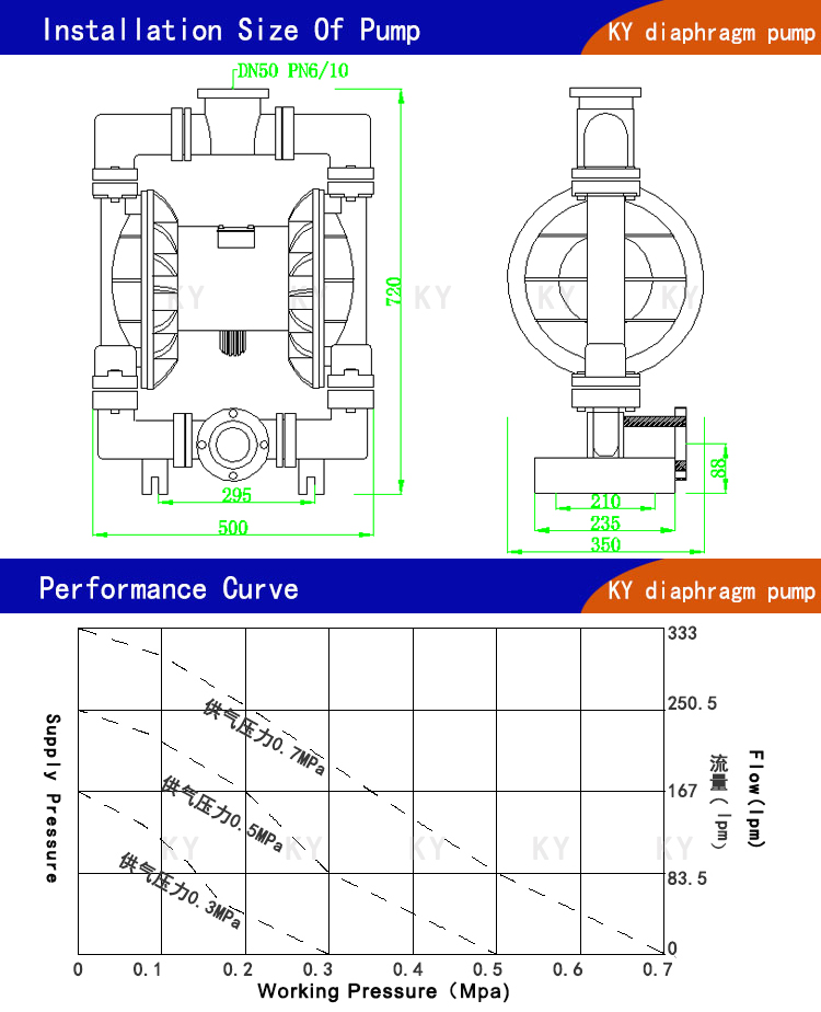 7、第四代QBY氣動(dòng)隔膜泵不需灌引水,吸程高達(dá)7米,揚(yáng)程達(dá)70米,出口壓力≧7bar