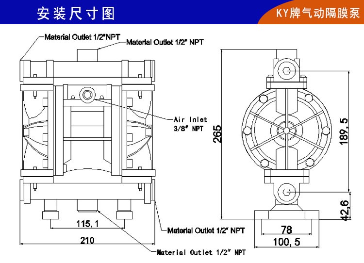 3、KY-15SS聚丙烯PP氣動隔膜泵最大的特點是供氣壓力在0.2Mpa以上就可以正常啟動(老型QBY型氣動隔膜泵供氣壓力需要0.5Mpa以上才可以正常運轉(zhuǎn)),不用再為氣動設(shè)備多導致氣壓不足而停機。