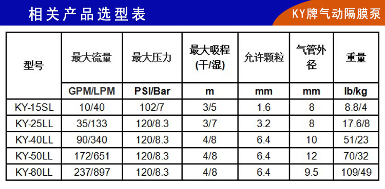 7、KY-25LL鋁合金氣動隔膜泵無需潤滑,沒有潤滑劑污染物料之憂