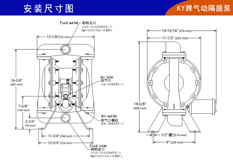 9、KY牌鋁合金氣動隔膜泵整體構(gòu)造上更加優(yōu)化,泵腔和主管路都有明顯加強(qiáng),自吸功能和流量揚(yáng)程都有很大改善。