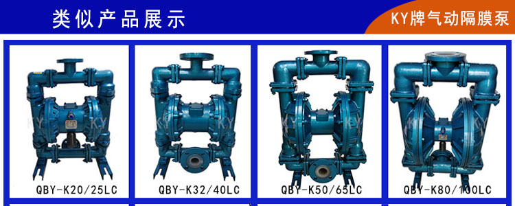 QBY-K50LC第四代qby氣動(dòng)隔膜泵廠家—上???yáng)泵業(yè)經(jīng)過(guò)研發(fā)改進(jìn),產(chǎn)品有了更完美的輸送效果。內(nèi)襯氟氣動(dòng)隔膜泵以優(yōu)質(zhì)鑄鋼A2為外殼,具有良好的物理性能,以特氟龍F(tuán)46聚全氟乙丙烯(性能超越四氟)為內(nèi)襯材料,可適用于除熔融態(tài)堿鹽以外的任何酸、堿及各類有機(jī)溶劑,應(yīng)用范圍極其廣泛。內(nèi)襯氟qby氣動(dòng)隔膜泵具有結(jié)構(gòu)美觀,良好的物理抗性,經(jīng)久耐用等特點(diǎn),對(duì)于各種腐蝕性液體、帶顆粒、高粘度、易揮發(fā)、易燃、易爆、劇毒的液體均能予以抽光吸盡,尤其可以解決葉片式泵的跑、冒、滴、漏及不允許空轉(zhuǎn)等問(wèn)題。上???yáng)生產(chǎn)的QBY-K50LC氣動(dòng)隔膜泵液體經(jīng)過(guò)的部分全部使用四氟,請(qǐng)廣大新老客戶放心使用: