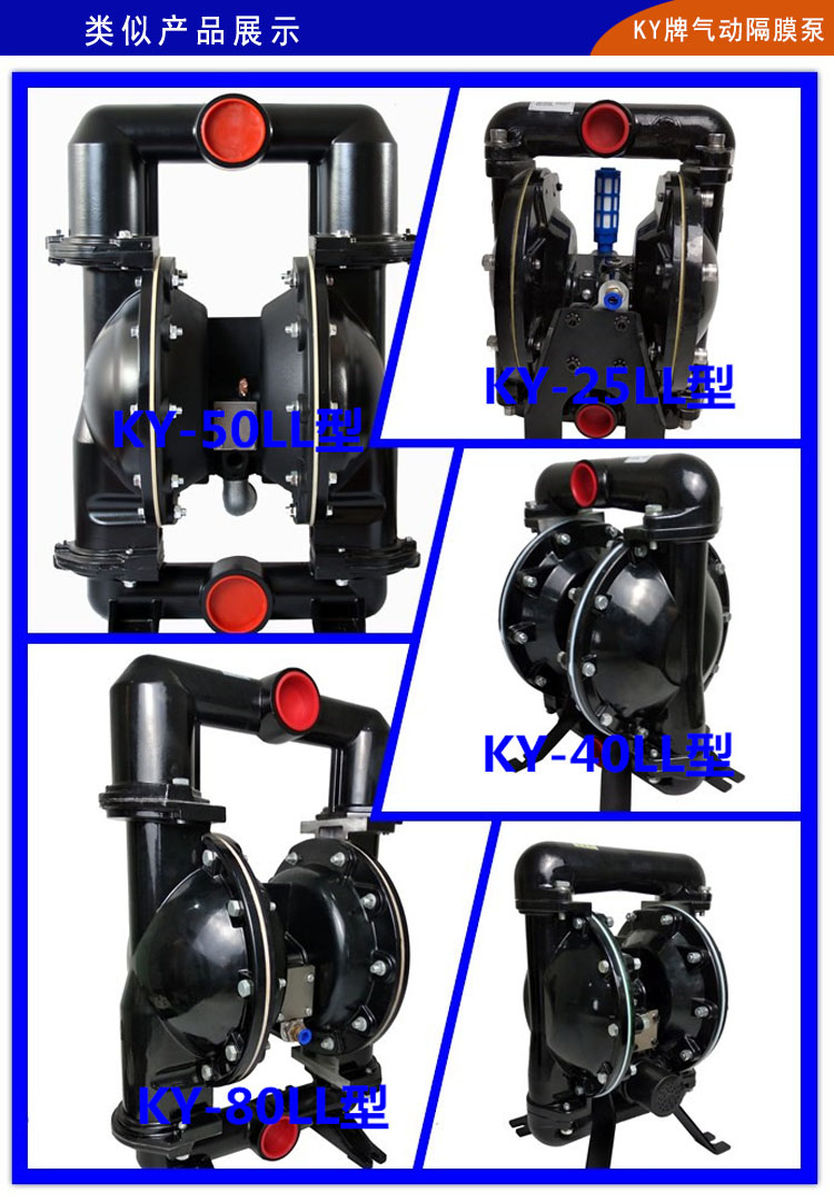 2)、KY氣動雙隔膜泵整體構(gòu)造上更加優(yōu)化,泵腔和主管路都有明顯加強,自吸功能和流量揚程都有很大改善。