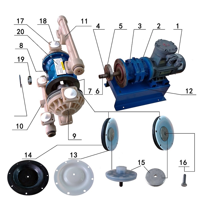 ●根據(jù)楷陽(yáng)隔膜泵原配易損件材質(zhì),建議配進(jìn)口特氟龍隔膜片,并每六個(gè)月檢查一次密封球、密封座、隔膜片;其他材質(zhì)隔膜片需根據(jù)實(shí)際抽取液體的腐蝕性、溫度、硬顆粒等參數(shù)檢查取決是否更換。