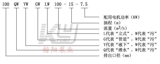 四、GW型管道式無(wú)堵塞排污泵型號(hào)意義