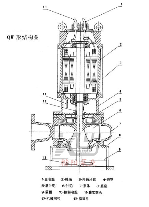 七、QW(WQ)型潛水式可移動(dòng)無(wú)堵塞排污泵結(jié)構(gòu)圖: