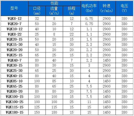 (8)長期抽送高含砂量的液體對WQK/QG帶切割裝置排污泵的過流部件磨損較大,推薦使用本廠旋流式污水污物潛水電泵產(chǎn)品。