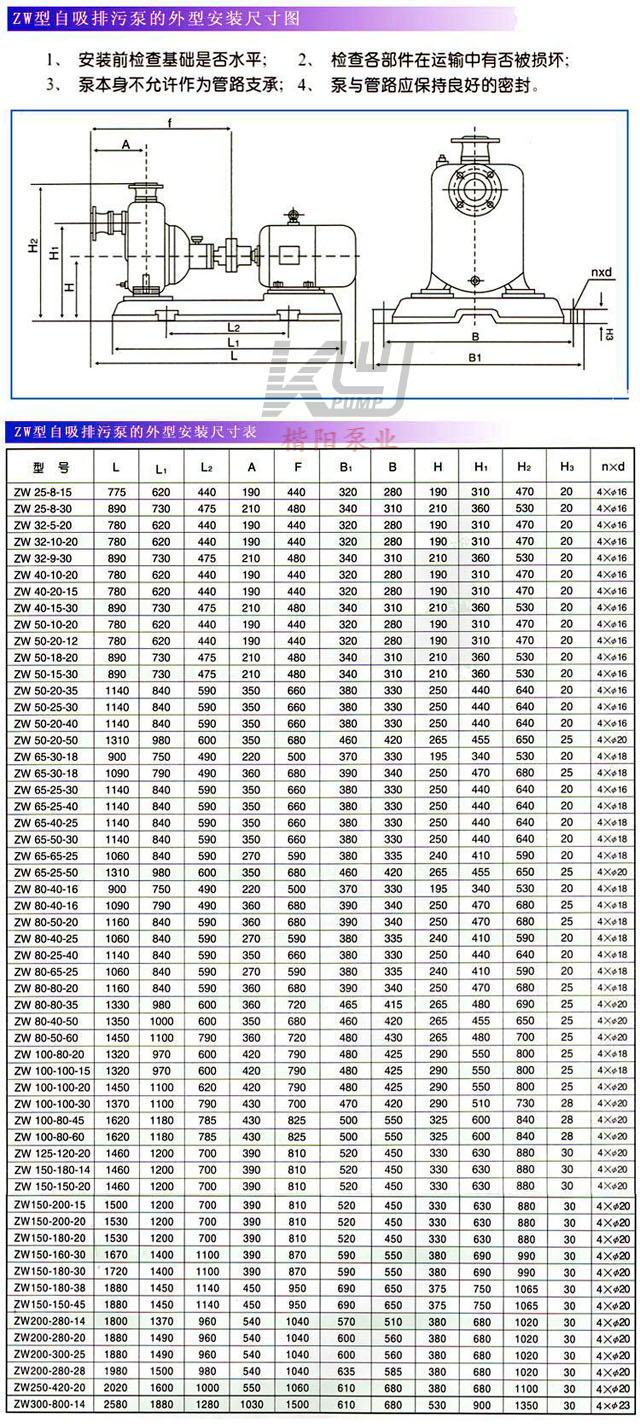 ZW型自吸式無堵塞排污泵技術(shù)參數(shù)